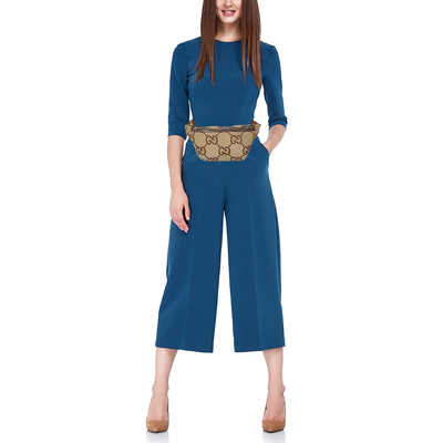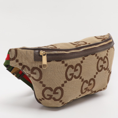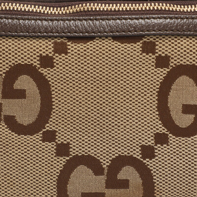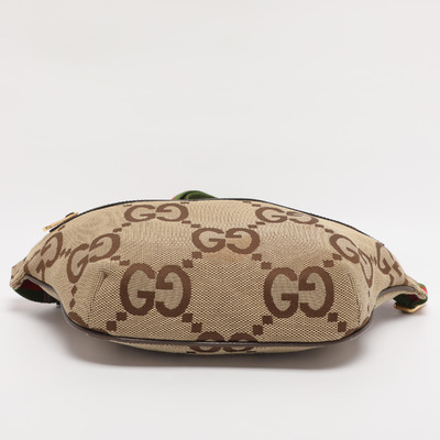 Gucci’s Jumbo GG canvas bag in beige sits comfortably across the waist, keeping essentials close at hand. Its soft structure and iconic pattern make it an effortless companion for city strolls, weekend getaways, or hands free days out.