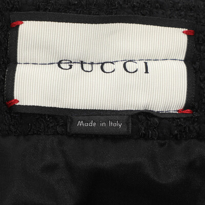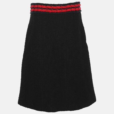 Elevate your casual elegance with this luxurious black midi crafted from premium tweed. Designed by Gucci, this skirt exudes sophistication with its fine texture and impeccable tailoring. The discreet zip closure adds a touch of modernity, making it a versatile addition to your wardrobe. Ideal for those who appreciate timeless style with a modern twist, this piece is a testament to refined fashion.