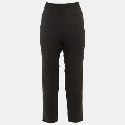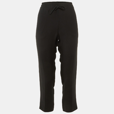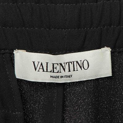 These Valentino black silk trousers redefine comfort and luxury with their relaxed drawstring waist and fluid drape. Designed for effortless sophistication, they pair seamlessly with both casual tops and dressy blouses. A wardrobe essential for elevated off duty styling.