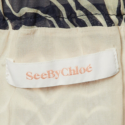 Crafted from fluid silk, this See by Chloé maxi skirt flows gracefully with every step. The navy base and delicate print exude bohemian ease, while the lightweight silhouette ensures comfort and sophistication — ideal for day to evening styling.
