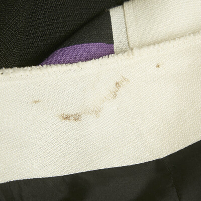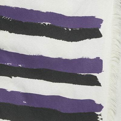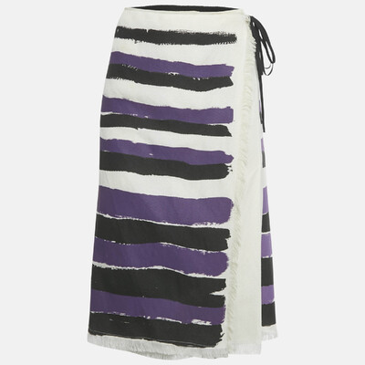 Marni’s wrap midi skirt showcases the house’s love for playful contrasts and contemporary tailoring. Crafted from a crepe blend, it features asymmetrical stripes in black and purple that lend dynamic movement to the silhouette. The self tie wrap design adds versatility, making it a refined yet artistic piece for transitional styling.
