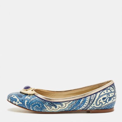 Etro brings its signature paisley artistry to these ballet flats. Crafted from coated canvas with leather trims, they feature a soft almond toe and cushioned interior. Their fusion of Italian craftsmanship and artistic patterning makes them a stylish companion for everyday refinement.