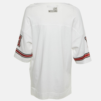 Love Moschino infuses playfulness into a casual staple with this glitter printed T shirt. Crafted from soft cotton in an oversized cut, it showcases the brand’s youthful, expressive spirit — perfect for pairing with denim or skirts for an effortlessly fun look.