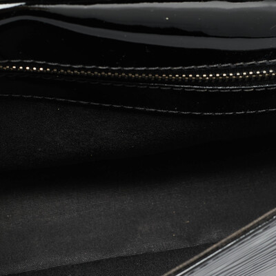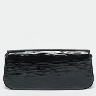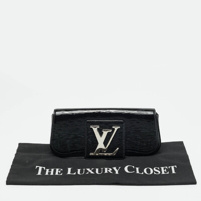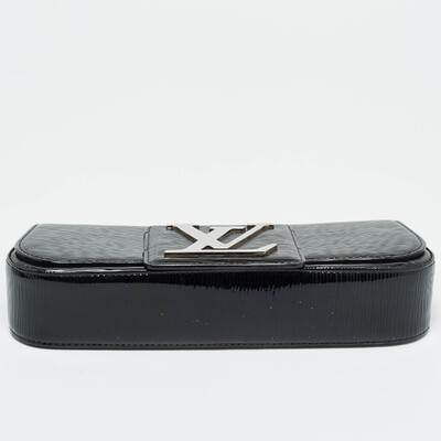 Black Epi leather shapes the Louis Vuitton Sobe clutch with a crisp, tactile edge. A silver tone LV clasp punctuates the familiar lines, while the compact frame fits neatly in the hand, carrying just the essentials for an evening out.