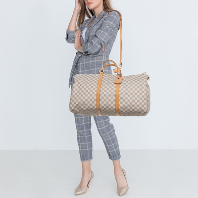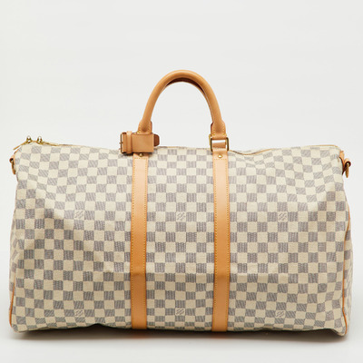 Travel in iconic style with the Louis Vuitton Keepall Bandoulière 55 in Damier Azur canvas. Lightweight yet spacious, it offers generous room for weekend getaways. Finished with natural leather trims and a detachable strap, it’s the epitome of luxury travel.