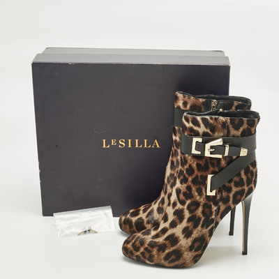 Le Silla’s ankle booties bring Italian artistry to life with their mix of brown and black calf hair contrasted by smooth leather panels. The sculpted heel and pointed toe add sophistication, while the supple interior ensures all day comfort. A fusion of bold texture and tailored silhouette, they lend statement appeal to structured dresses or evening ensembles, embodying the label’s signature elegance with an edge.