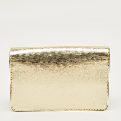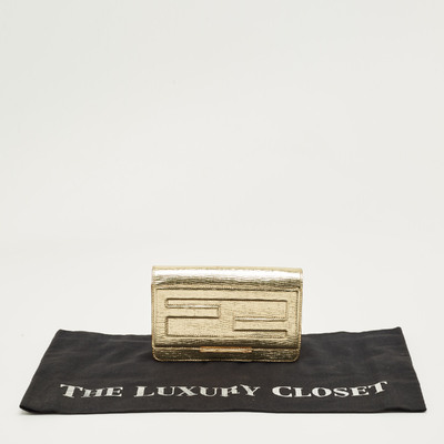 The Fendi Tube Wallet gleams in gold textured leather, like a tiny treasure you carry everywhere. Its structured interior keeps cards and cash organized, while the radiant finish turns even ordinary moments into something special.