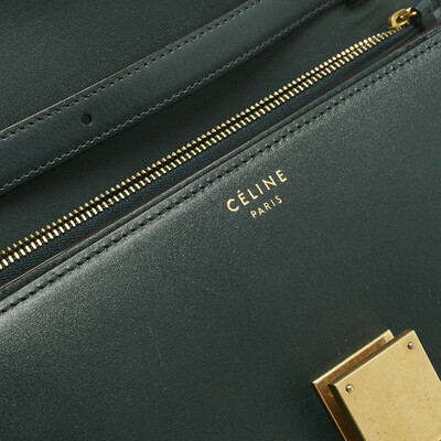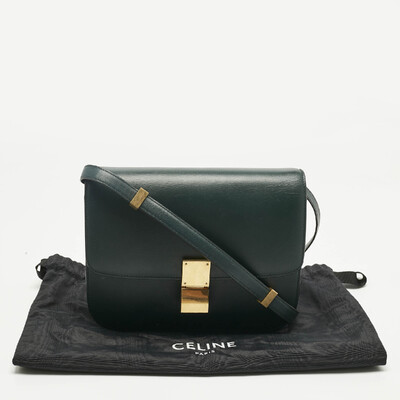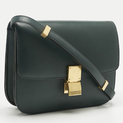 The Celine Green Leather Medium Classic Box Bag reflects timeless Parisian style. First introduced under Phoebe Philo’s direction, it became a modern classic known for its clean shape. The rich green leather and gold tone clasp make it a piece you’ll reach for season after season.