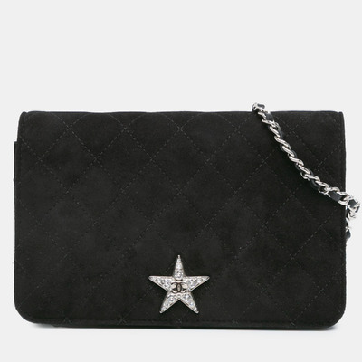 Chanel Black Quilted Suede Cocostellar Wallet on Chain 1231838 (чёрный, lpn31076740)
