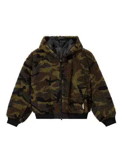 green and multicolour camouflage pattern hooded zip fastening ribbed hem and cuffs