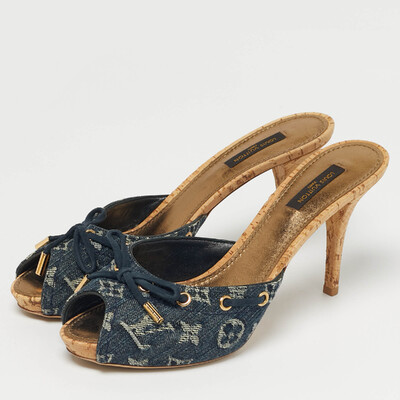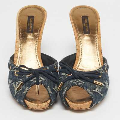 Louis Vuitton Blue Denim Malibu Slide Sandals Size 38.5 1233226 (голубой, lpn31076797)