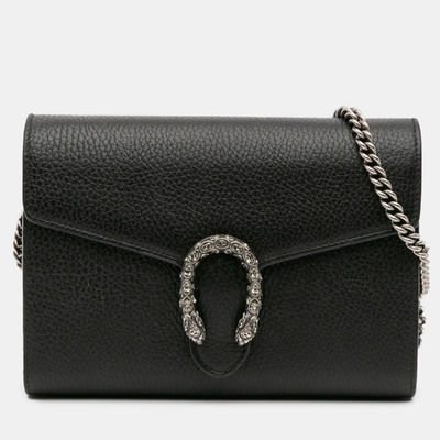 Gucci Black Mini Leather Dionysus Wallet on Chain 1232960 (чёрный, lpn31076859)