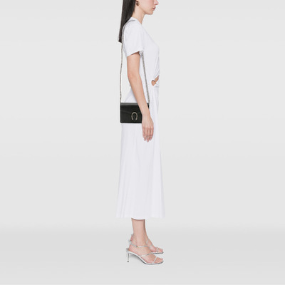 A compact Gucci Dionysus wallet on chain made from smooth leather, detailed with the signature silver tone clasp. Fits cards, cash, and a phone for light travel days.