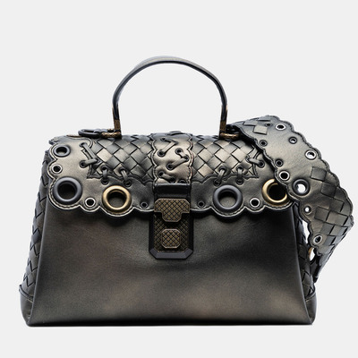 Where craftsmanship meets attitude, this satchel fuses the house’s storied weaving tradition with a metallic gleam and rebellious spirit. Trimmed in intrecciato and punctuated with grommets, it’s equal parts sculptural and subversive. A bag that catches light — and keeps secrets.