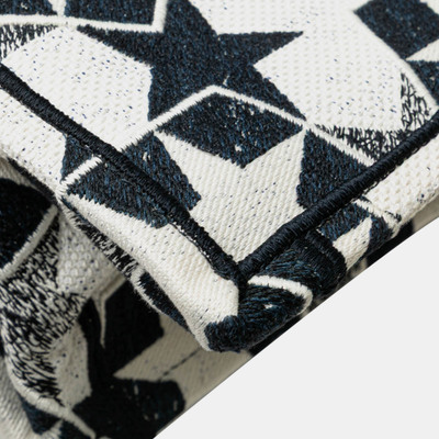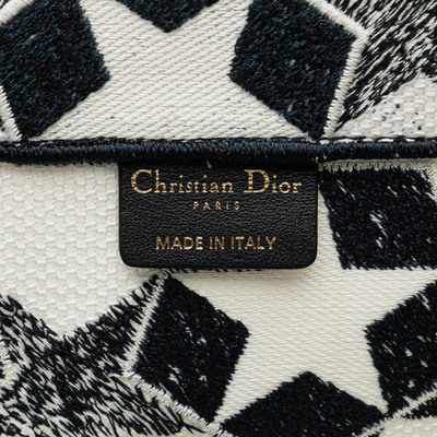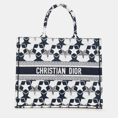 Dior Navy Blue White Large Canvas Embroidered Lucky Star Book Tote 1232952 (lpn31076883)
