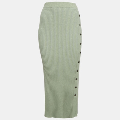 Tory Burch Green Lurex Rib Knit Midi Skirt L 1232571 - 1 small