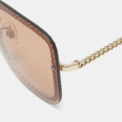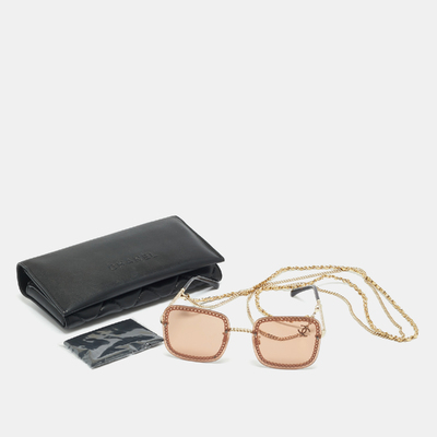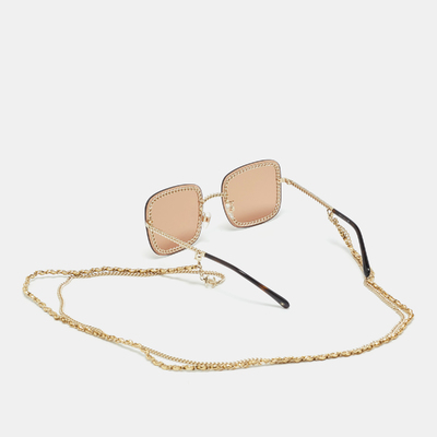 Chanel’s 4244 sunglasses combine innovation with couture sensibility. The brown square frames feature removable metal chains interwoven with leather — a tribute to the maison’s iconic handbag straps. Paired with tinted lenses, they deliver both UV protection and an unmistakably Chanel air of refined nonchalance.