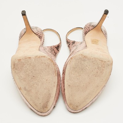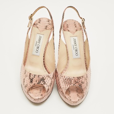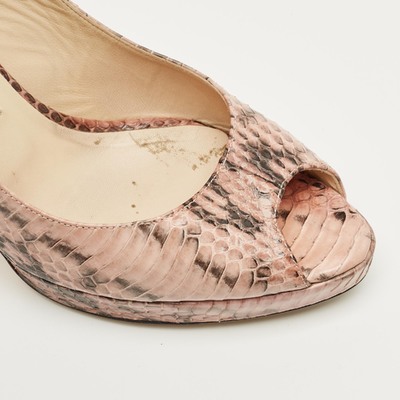 These preloved Jimmy Choo slingback pumps bring a soft touch of luxury with their pink python leather and classic peep toe style. The natural scales create a beautiful texture, while the slim heel adds height and grace.