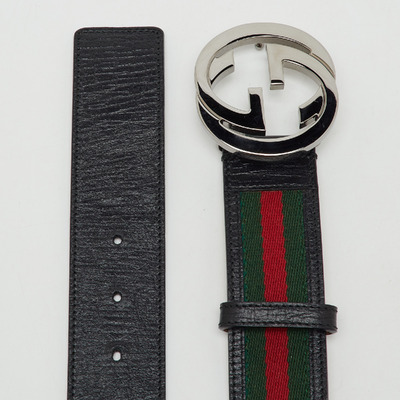 Gucci’s heritage meets modern craftsmanship in this black leather belt, defined by the signature green red Web stripe. The polished Interlocking G buckle anchors the design in the house’s archival codes, while supple Italian leather ensures lasting form and flexibility — an effortless emblem of refined daily style.