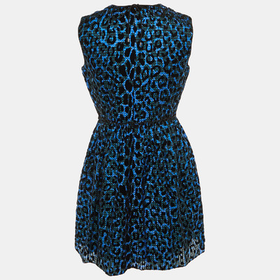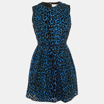 Victoria, Victoria Beckham Blue/Black Leopard Pattern Devore Sleeveless Dress M 1232344 Victoria, Victoria Beckham (голубой, lpn31077042)