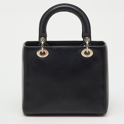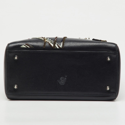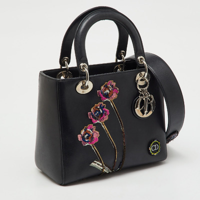 Dior Black Leather Flower Embroidered Medium Lady Dior Tote 1232163 (чёрный, lpn31077086)
