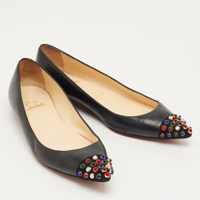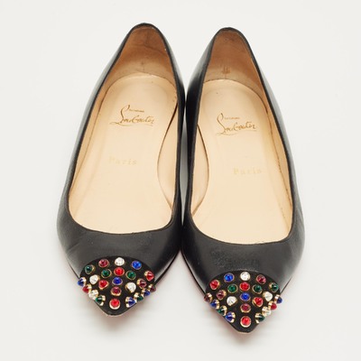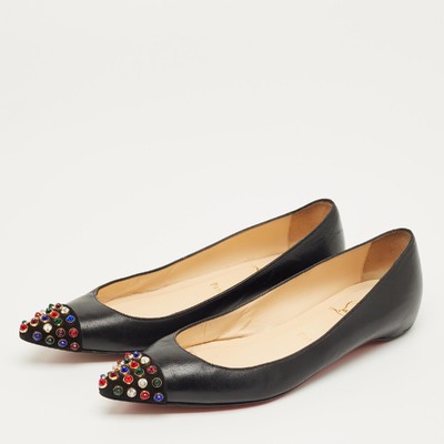 Christian Louboutin gives classic flats a lively twist with this pair crafted in black leather and suede. The pointed toes are dotted with colorful studs, adding a bit of fun to their sharp shape. Comfortable yet full of personality, they’re an easy way to bring a spark to everyday looks.
