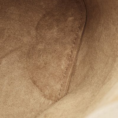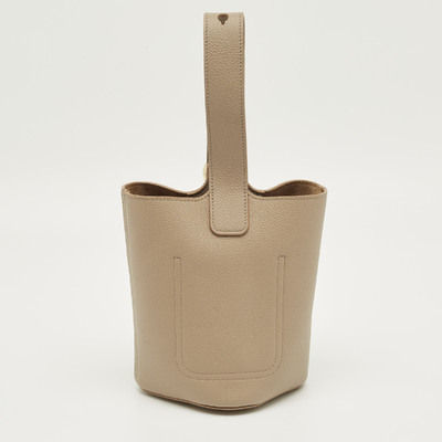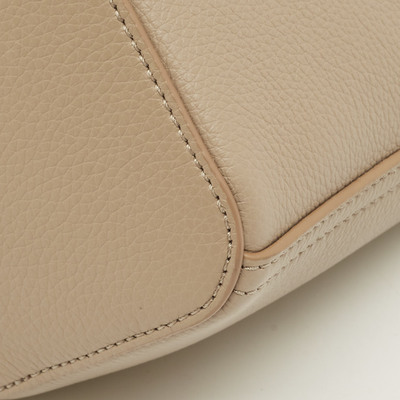 Loewe’s Mini Pebble bag embodies effortless sophistication. Crafted in smooth beige leather, it features the distinctive pebble shaped toggle closure and adjustable shoulder strap. The sculptural yet relaxed form reflects the brand’s mastery in reinterpreting artisanal design for modern wear.