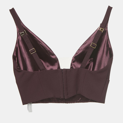 Elisabetta Franchi brings structured femininity to this cropped top, rendered in deep burgundy crepe. The design features clean tailoring, tonal seams, and a fitted silhouette that complements high waisted skirts or trousers. A modern expression of refined Italian glamour.