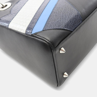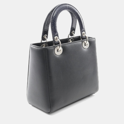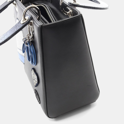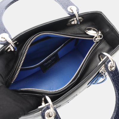 A true emblem of Dior elegance, this Lady Dior bag in deep black and soft blue leather speaks the language of haute couture. Its architectural form and signature charm detailing echo the legacy of the house, while the subtle contrast infuses a modern, moody romance. A classic with quiet intensity.