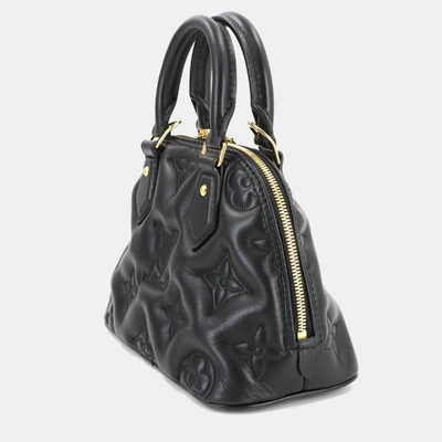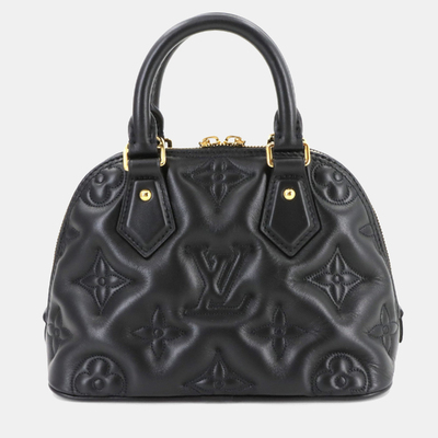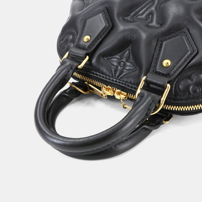 The Louis Vuitton Alma Soft BB Bubble Gram 2 Way Handbag in Noir Leather with Gold Hardware is a modern reinterpretation of the house’s iconic Alma silhouette. Crafted in supple black leather, its soft structure exudes understated elegance, while the subtle bubble quilting adds a contemporary, tactile dimension.