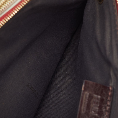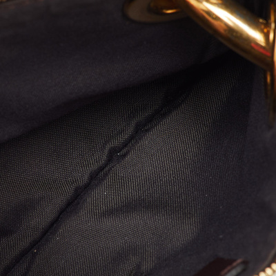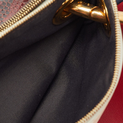 Fendi’s Triplette clutch features three pouches in different sizes, ideal for keeping essentials neatly organized. A wristlet strap detailed with large pearls and a gold tone ring clasp adds elegance and charm, making the bag as functional as it is striking.