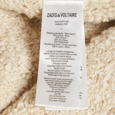 Zadig & Voltaire Cream Boucle Open Front Daphnee Cardigan L 1231796 (lpn31077332)