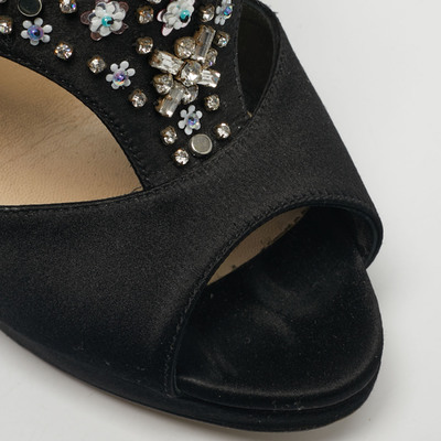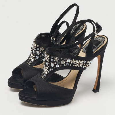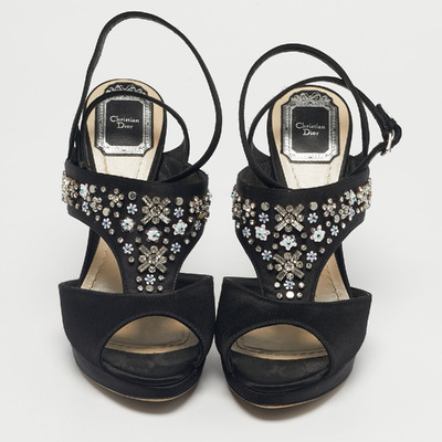 Dior Black Satin Crystal Embellished Ankle Strap Sandals Size 37.5 1231693 (чёрный, lpn31077340)