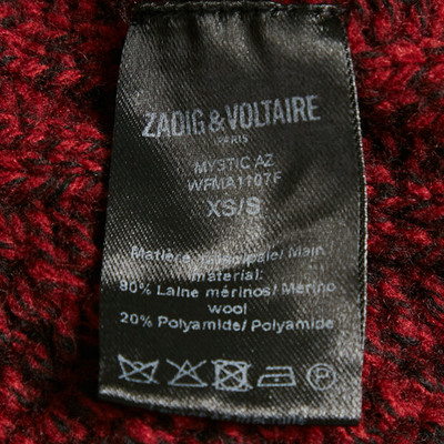 This Zadig and Voltaire Mystic cardigan features a rich burgundy rib knit with a soft shawl collar for a relaxed yet polished feel. Perfect for effortless layering with jeans or dresses.