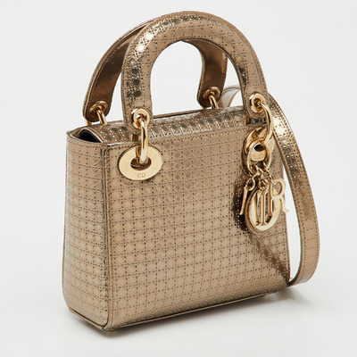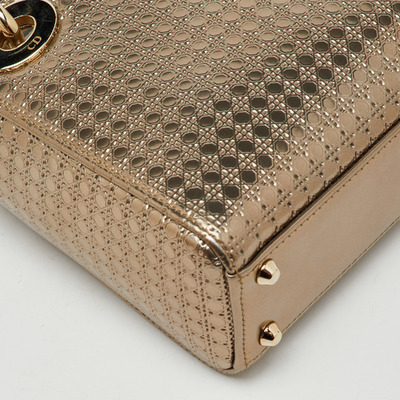 Dior Metallic Gold Microcannage Patent Leather Mini Lady Dior Tote 1231383 (lpn31077392)