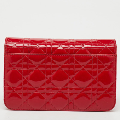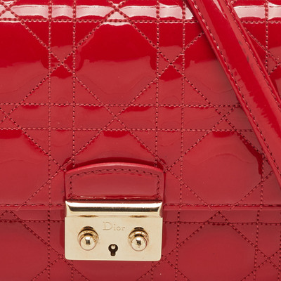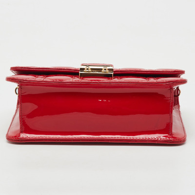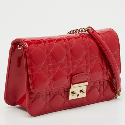 This Miss Dior Promenade bag showcases the maison’s classic Cannage stitching in glossy red patent leather. Adorned with the signature Dior charm and a gold tone chain strap, it offers structured elegance with practical compartments. A modern statement of Parisian femininity rooted in heritage craftsmanship.