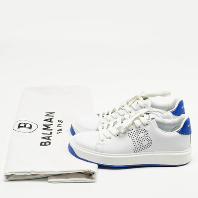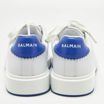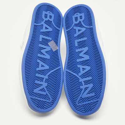 These Balmain sneakers showcase a bold contrast palette in white and blue leather, reflecting the brand’s urban luxe aesthetic. Designed with lace up vamps, padded collars, and sculpted soles, they offer both visual depth and comfort. An ideal addition to contemporary streetwear rotations.