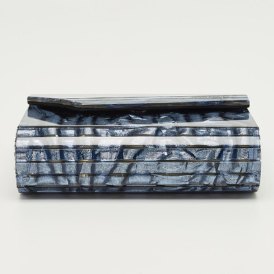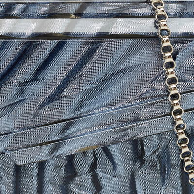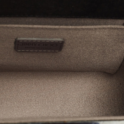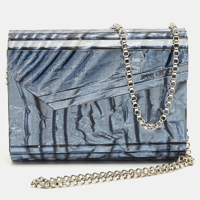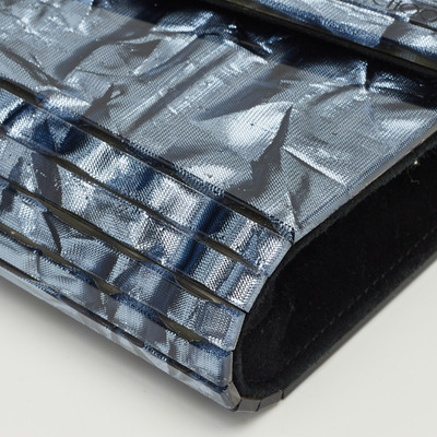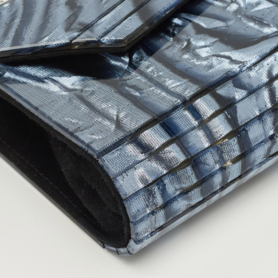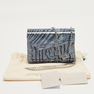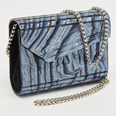 Jimmy Choo’s Candy clutch combines contemporary texture with iridescent charm. Designed in glossy blue acrylic and trimmed with soft suede, its crinkled finish catches the light beautifully. The interior holds evening essentials, while the detachable chain transforms it from clutch to crossbody with ease.