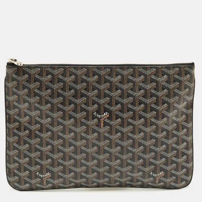 Structured yet light, this Goyard Senat pouch in black Goyardine coated canvas slips effortlessly under the arm or into a tote. Its minimal silhouette keeps essentials close, while the textured canvas hints at understated craftsmanship with every touch.