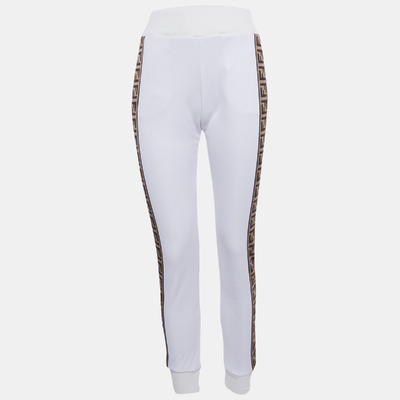 These Fendi knit joggers feature signature Zucca band detailing along the sides for an iconic touch. The clean white finish and slim fit make them a chic upgrade to athleisure dressing.