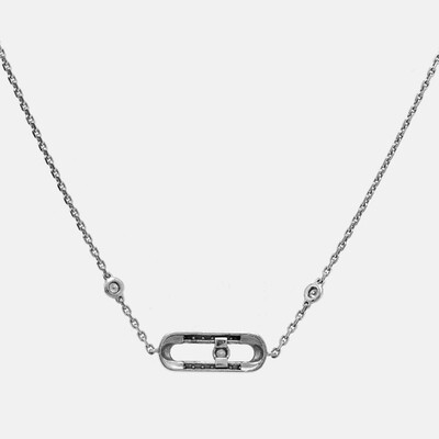 Messika’s Move Uno bracelet encapsulates contemporary elegance. Crafted in 18k white gold, it features a single diamond set within a pavé frame that slides freely inside the central motif — symbolizing freedom and movement. Sleek, feminine, and wearable, it’s a modern icon of fine jewelry design.