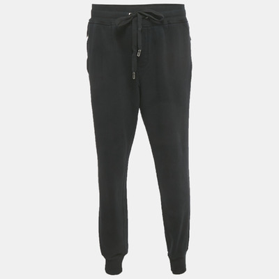 Stay stylish and comfortable with these Dolce and Gabbana black knit jogger pants designed in a relaxed fit. Featuring an elasticated waistband and tapered legs, they offer everyday ease with designer flair.