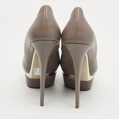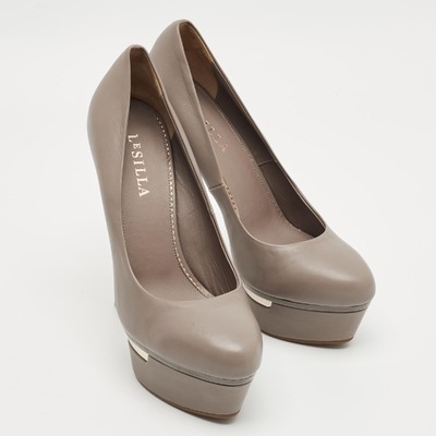 Le Silla Grey Leather Round Toe Platform Pumps Size 40 1228693 (lpn31077535)