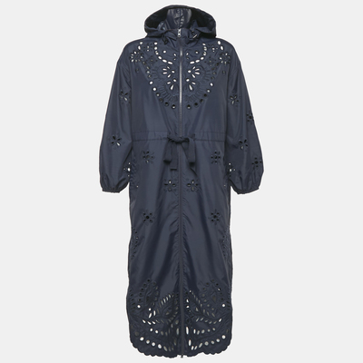 Red Valentino Navy Blue Broderie Anglaise Nylon Hooded Parka S 1162770 (lpn31077542)