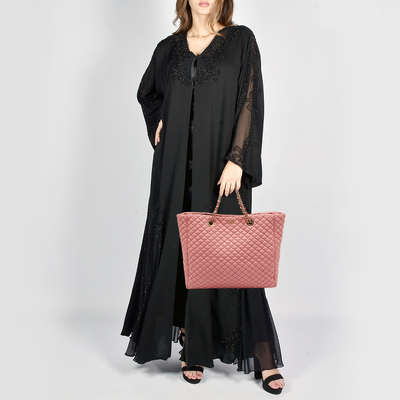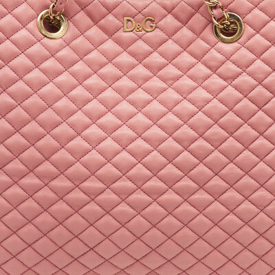 The D and G Lily Glam tote is made for days that never stay still. Its quilted peach pink leather and gold chain straps give a lift to even the simplest outfit, while the generous interior easily fits a laptop, makeup pouch, and more.