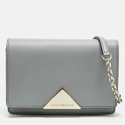 This Emporio Armani Astrid bag is crafted from smooth light blue leather and finished with the brand’s signature triangular hardware at the flap. The design features a chain leather shoulder strap for a hint of shine and easy wear.