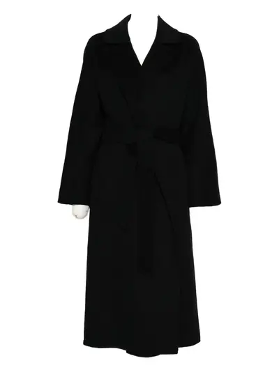 black self-tie belt notched lapels long sleeves side slip pockets