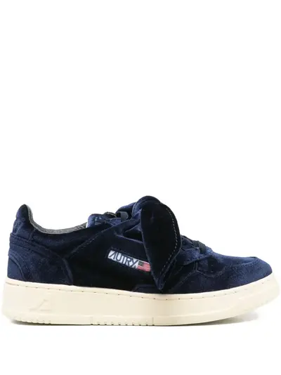 blue lace-up fastening logo motif bow detail velvet finish padded collar