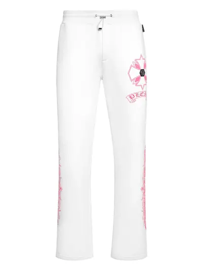 white and pink floral print side panel floral print drawstring fastening crest emblem embroidered detailing