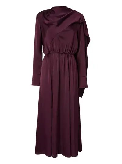 purple draped detailing long sleeves elasticated waist cuff detailing below-the-knee length